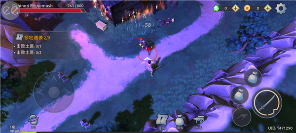 4、按照主线任务要求,玩家需打败土匪,此时点击武士刀虚拟按键来攻击敌人。