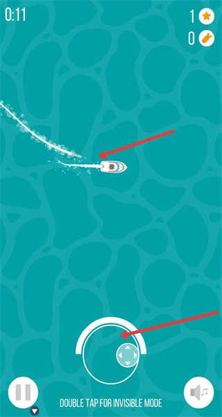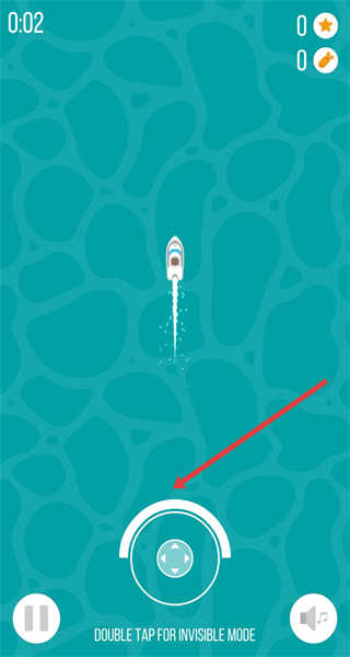 2、游戏启动后,要熟悉底部轮盘的操控方式。通过滑动轮盘,能够调整船只的行驶方向。另外,务必牢记双击可触发隐身模式这一提示,提前做好躲避鱼雷的准备。