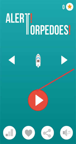 1、玩家轻点红色播放键,开启游戏,随即进入鱼雷躲避挑战环节。启动之后,玩家就能操控船只展开冒险,迅速推进游戏流程。
