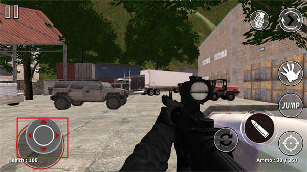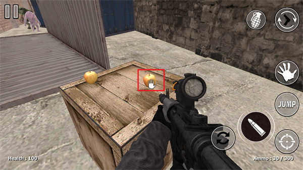 4、拿起手中的枪支,瞄准怪物,以便顺利将它们击毙。射击按钮位于屏幕右下角的红色框内。
