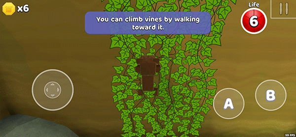 靠近树叶藤蔓,左下角按钮向上可以控制熊熊向上爬。