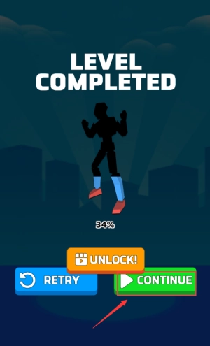 点击红框中的CONTINUE按钮,即可继续挑战下一个关卡。