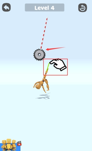 触碰红框绿色连接线,控制锯片切割木偶。