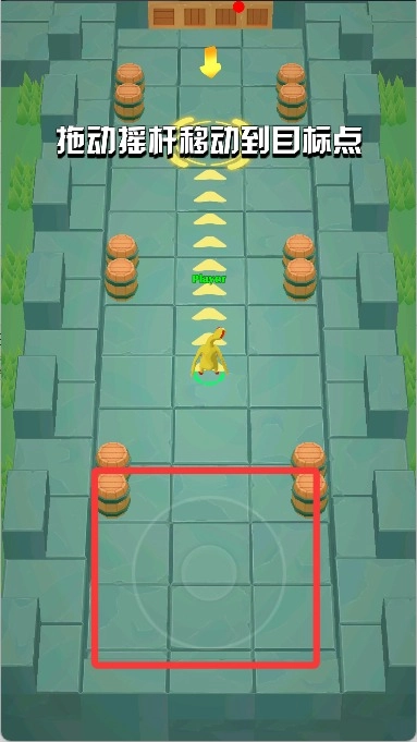 开始游戏后滑动屏幕下方摇杆即可移动角色,