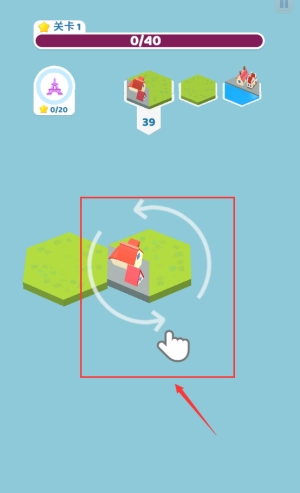 点击红框虚线圆圈区域,放置第一个建筑地块。