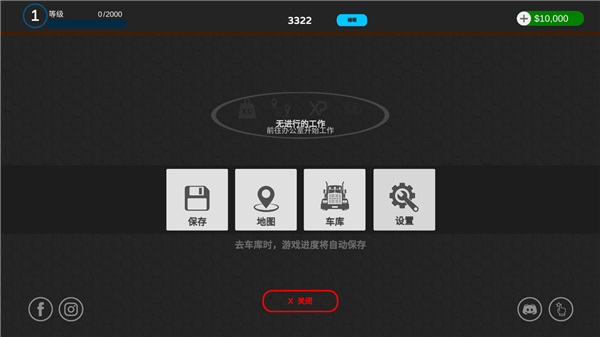 安装好环球欧卡模拟后,启动游戏,点击左上角的图标按钮进入功能菜单。