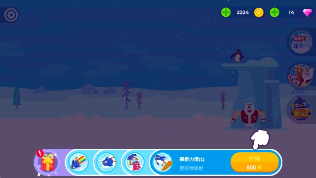 进入游戏后,我们需要操控白熊去击打企鹅,首次点击会使企鹅掉落,再次点击就能完成击打操作!
