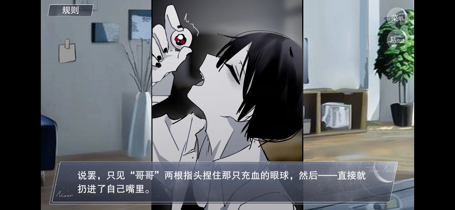 触发隐藏剧情的条件是所有规则都查看过,其他就不一一细说了,有问题可以再提。另外,洗手间、电视、厨房、哥哥卧室这些地方都需要触发,其中哥哥卧室要触发两次。建议提前存档,因为有些选项选错了就得重开。要是实在过不了,我可以写个第二天地图探索的攻略。