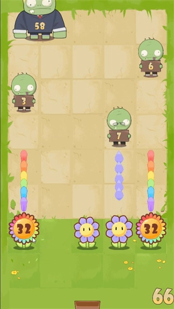 玩家能够把两朵相同的花拖到一块儿,合成出攻击力更强的花朵。