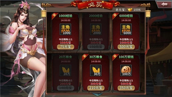 随着等级的提升,当达到特定等级后会解锁等级特惠活动,其中包含用元宝购买主角经验的选项。各位主公可以根据自身需求酌情考虑,在需要快速提升等级时,这会是一个相当不错的经验获取途径。