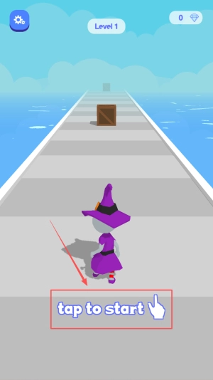 进入关卡的操作:点击“tap to start”按钮即可进入Level 1关卡。