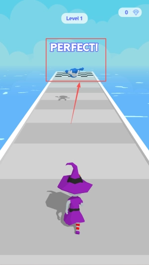 获得评价:画面显示“PERFECT!”表示操作完美。