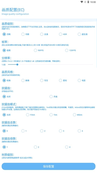 点击开始配置画质选项,进行修改画质属性;