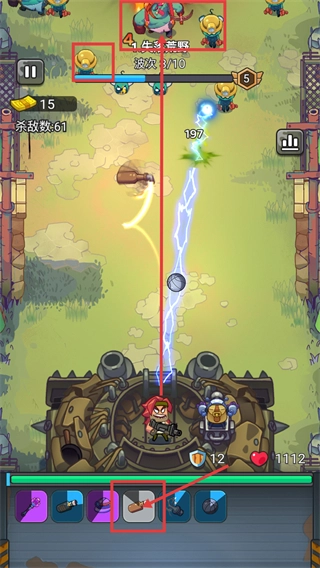 正处于【失落荒野-波次3/10】的战斗进程中,可依靠装备技能对敌人发起攻击,同时留意【杀敌数-61】与【生命值-1112】的数值变化,维持稳定的输出节奏。