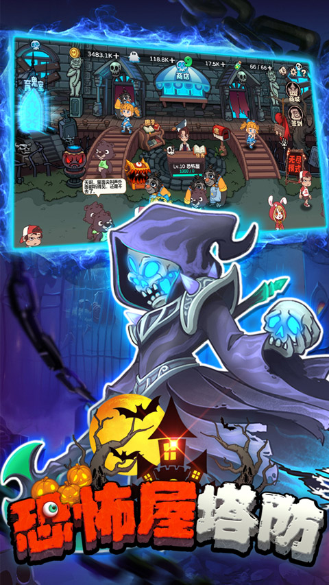 1、化身鬼屋的经营者,借助布置各类鬼怪元素与机关陷阱让游客受惊晕倒,以此赚取收益,同时持续对鬼屋设施和鬼怪造型进行升级优化。
