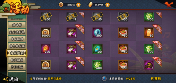 13、升级密卷和完成忍者招募的指定数量,能够领取相应的金币奖励(金币数额会递增,最高可达500金币)
