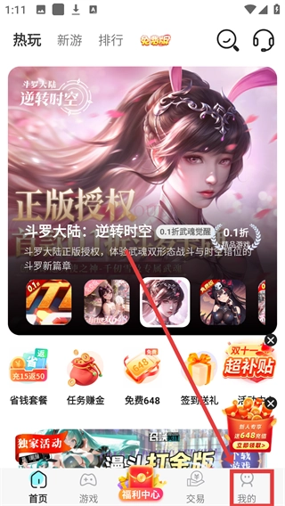 1、在游戏平台首页,点击底部的【我的】选项,就能进入个人中心页面,为账号安全设置操作做好准备啦。