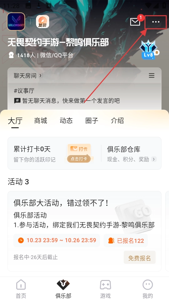 在俱乐部页面,你能找到【无畏契约】的相关标识,点击该标识即可进入无畏契约的专属俱乐部页面,了解俱乐部的具体情况。