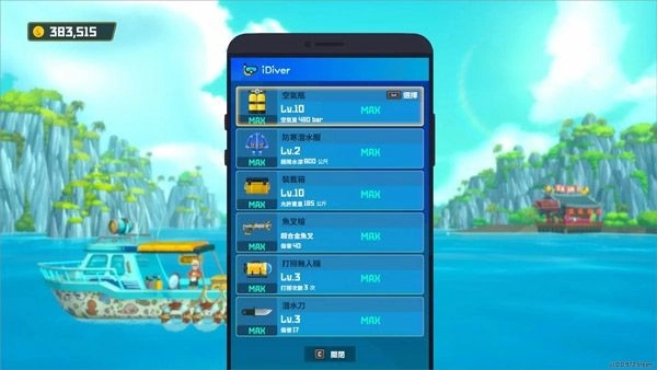 强化操作需要消耗材料和金币,不同的强化项目有着不一样的效果。装载箱经过升级后,能够增加可携带物品的数量;潜水服强化后,就能进入更深的水域探索;而氧气瓶升级则可以让水下活动的时间变得更长。