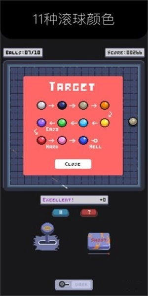 《谜之滚球》是一款玩法经典的复古街机战斗游戏,采用复古像素风格的美术画面,拥有3种丰富的游戏模式与11种滚球颜色可供选择,多元化的关卡设计将为你带来无尽乐趣,感兴趣的小伙伴们快来体验吧!