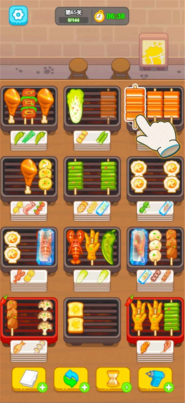 3、丰富多样的配料与烤架选择,赋予玩家自由搭配组合的空间,助力他们打造出别具一格的烤肉美味。