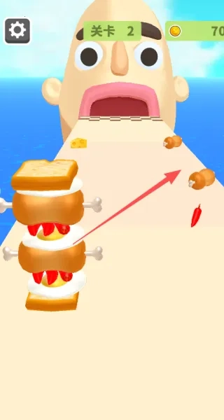 2、游戏玩法包括控制三明治收集食材、投喂顾客、避开不可食用的物品以及解锁外观皮肤等。