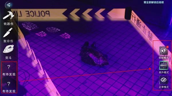 2、游戏内存在各类线索,玩家需借助模式道具来探寻它们。