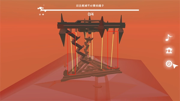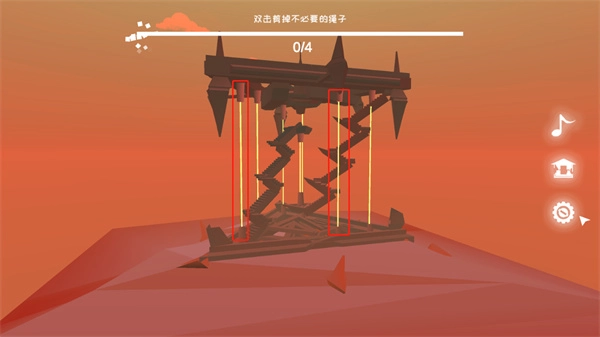1、第三关要剪断六根绳子,玩家得先把四个角的绳子剪断。