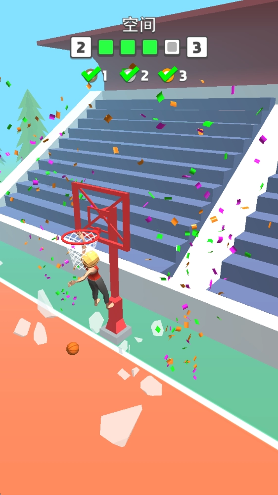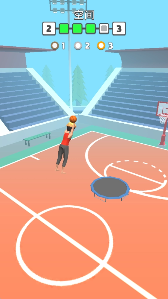 游戏的关卡难度会逐步提升,玩家得借助各类道具在空中完成翻转动作,把篮球酷炫地扣入篮筐。