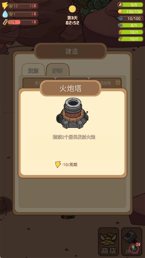 3、融合了白天建设村庄与夜晚塔防战斗的玩法,白天需收集资源、规划土地,建造避难所及各类生产设施。