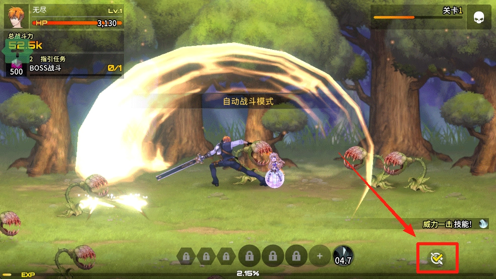 3、要是想更轻松些,还能开启“自动攻击”模式,让角色自行完成战斗。