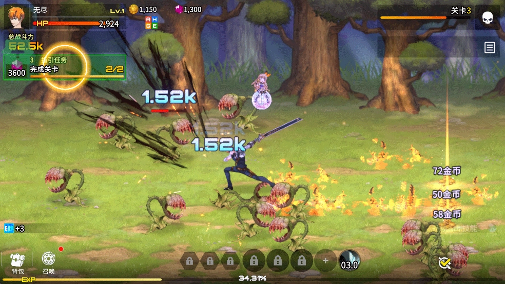 1、支持手动连招与自动攻击,随时切换玩法模式。
