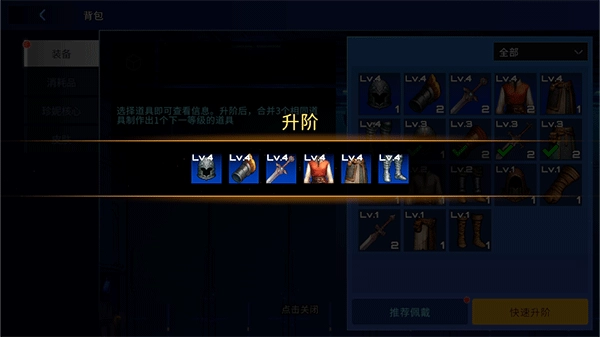 3、点击“快速升阶”按钮,就能一键完成所有装备的升阶操作。