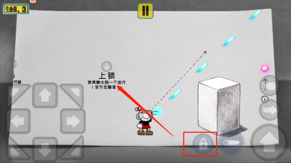 2、按住右侧上键即可进行跳跃,