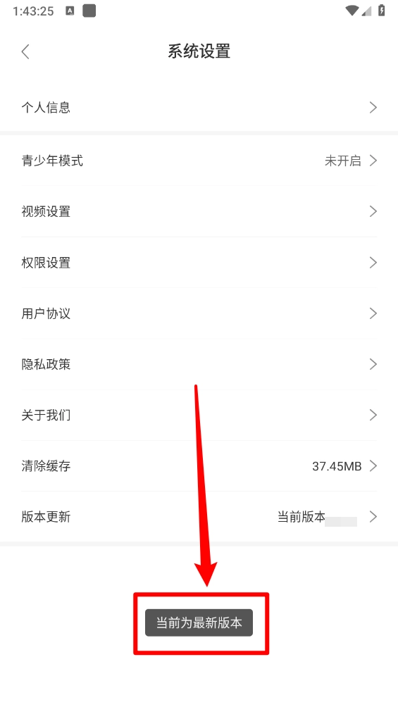 3、然后在系统设置页面点击底部"版本更新"。
