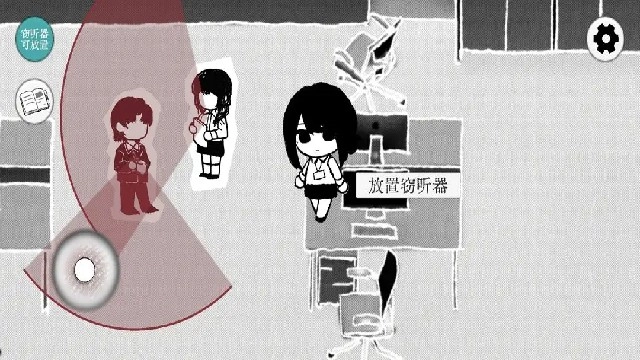 3、在办公区场景里,你能够操控角色进行移动,注意避开NPC的视野范围(即红色扇形区域),然后在恰当的位置点击“放置窃听器”,以此收集NPC的私密对话线索。