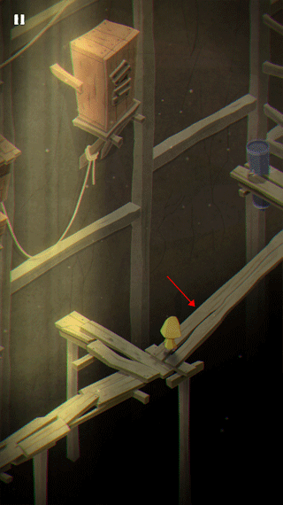 6、成功避开后爬上楼梯,移开两块挡路的木板就能进入下一个关卡。