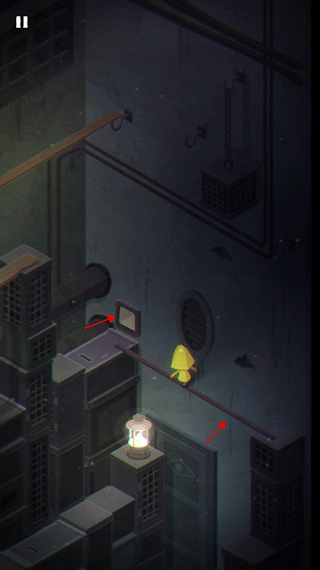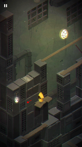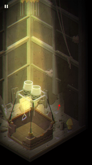 1、游戏刚开始时,摩诺正用门抵御外界的攻击,第一关开启时他被困在一个类似吊篮的地方,需要按住拉杆才能让自己降到地面。