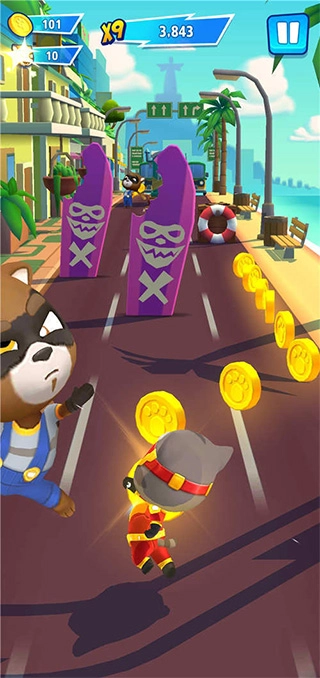 汤姆猫炫跑国际服 汤姆猫炫跑国际服是一款融合跑酷与养成玩法的休闲类游戏。游戏的核心任务是驱逐那些破坏城市平静的浣熊,化身超级英雄去营救被困的“安吉拉”。游戏整体采用清新可爱的画风,玩法独特新颖,操作简便易于掌握,在保留经典跑酷机制的基础上,增添了多样的全新元素。玩家在游戏中需借助跳跃和滑行来躲避障碍物,收集金币与各类道具,战胜途中遇到的敌人,向着更远的距离发起挑战。
