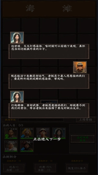 3、在白天时段,你得依靠经营活动来获取各类资源,这些资源可用于升级各类设施、招募不同职业的幸存者,还能支持你前往未知的区域展开探险;