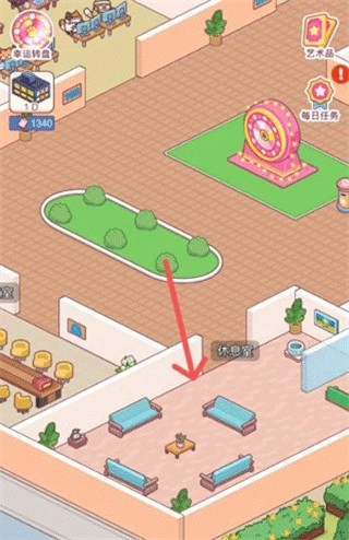 1、打开主界面后,找到休息室板块,选择任意一个区域点击进入。