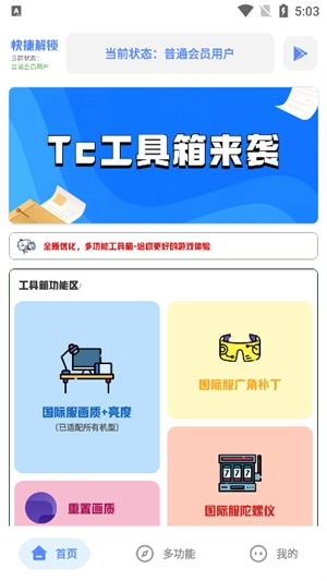 tc工具箱 《tc工具箱》是一款专为吃鸡游戏开发的画质辅助工具,它能快速呈现各类实用功能,帮助用户轻松找到所需内容。这款客户端面向追求极致游戏体验的玩家设计,让大家可以安心流畅地进行参数设置,打造理想的高画质效果。此外,它还支持多款热门游戏的画质调整,并提供丰富多样的画质选项供玩家自由挑选,既能让你安心享受游戏乐趣,也能让游戏过程更加流畅顺畅。