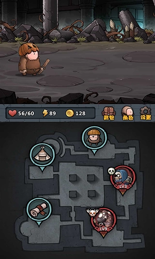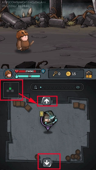 游戏下方左上角的位置显示着地图,通过点击那里的方向键按钮就能切换不同的地图。