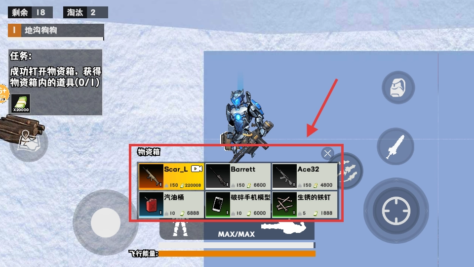 开启物资箱时,建议优先选择【Scar_L】【Barrett】或者【汽油桶】,这样能快速增强装备的战斗能力。
