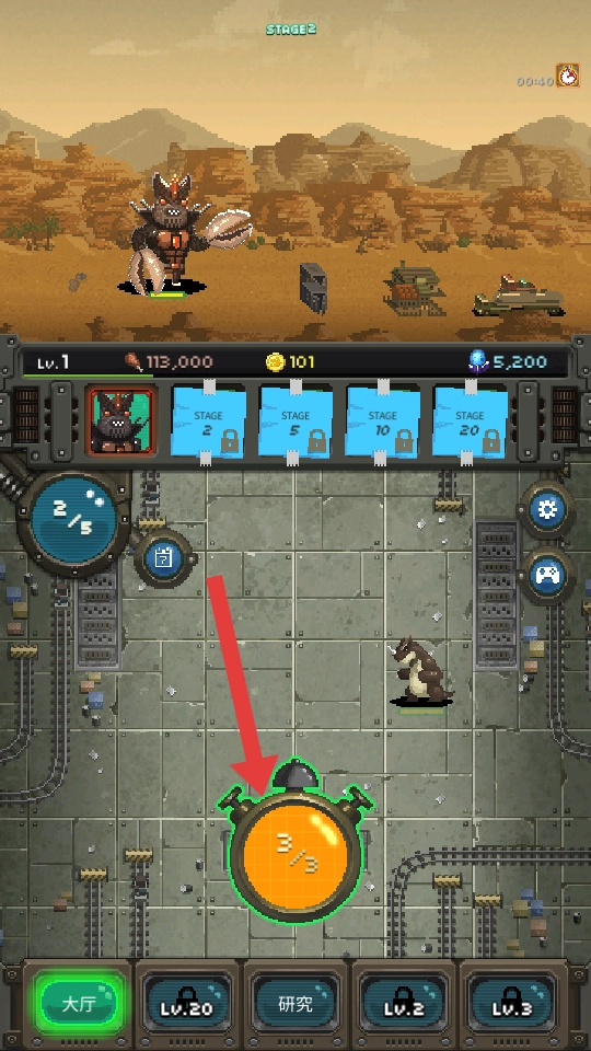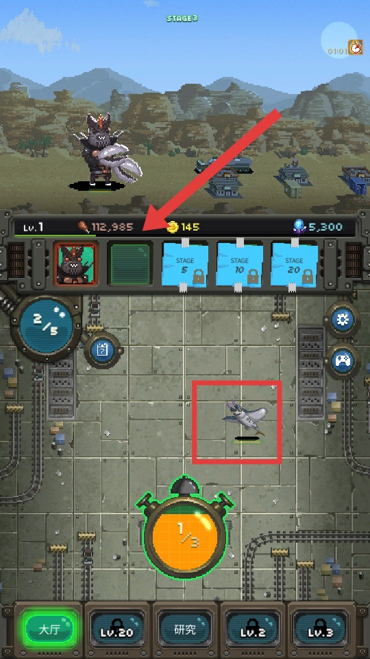 进入游戏后,点击橙色计时按钮,购买新的怪兽。