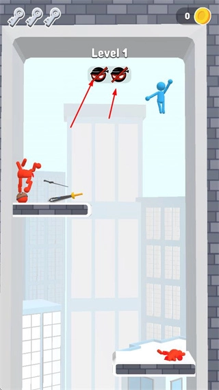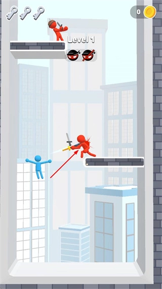 玩家操控蓝色火柴人这类角色,在城市建筑场景的平台上与红色火柴人等敌人展开战斗。敌人会持武器发起攻击,玩家需要及时躲避敌人的攻击并进行反击。