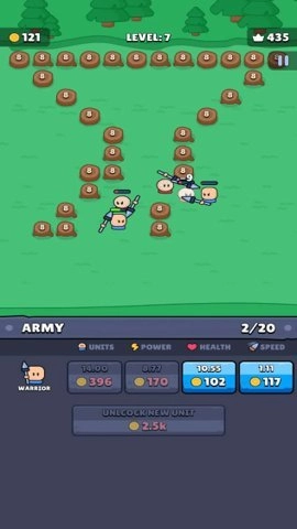 闲置勇士 闲置勇士是一款简单的策略塔防游戏,玩家只需轻松点击就能进入这个充满挑战的游戏世界。进入游戏后,玩家需要耐心等待,然后点击主角开始战斗。战斗过程中,玩家要为角色打气,以此尽可能提升战斗效果。游戏的每一关都设有不同的挑战,玩家需要保证兵源充足,不然就会有失败的风险。