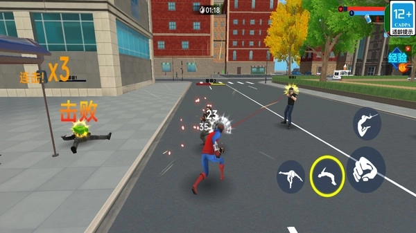 1、选择任务后,操控超能小子在都市场景中飞檐走壁,前往任务地点。
