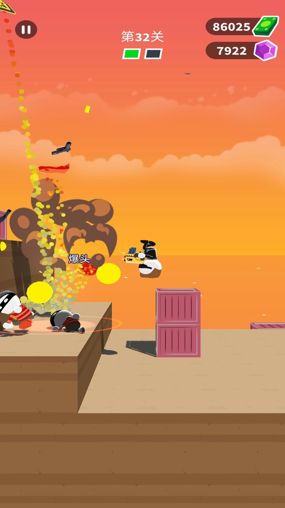 2.卡通渲染的风格,让紧张激烈的枪战场面变得轻松又有趣,当击中敌人的时候,他们还会变成各种搞笑的动物模样。