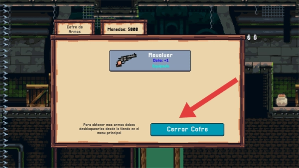 在武器展示界面,点击【CerrarCofre】关闭宝箱提示框,即可返回游戏主场景。